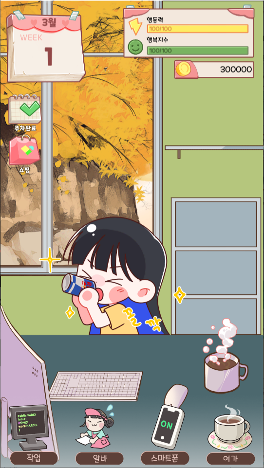 3월에는 기존에 있던 작업, 알바, 여가 콘텐츠에 미니게임 기능이 추가되었습니다!