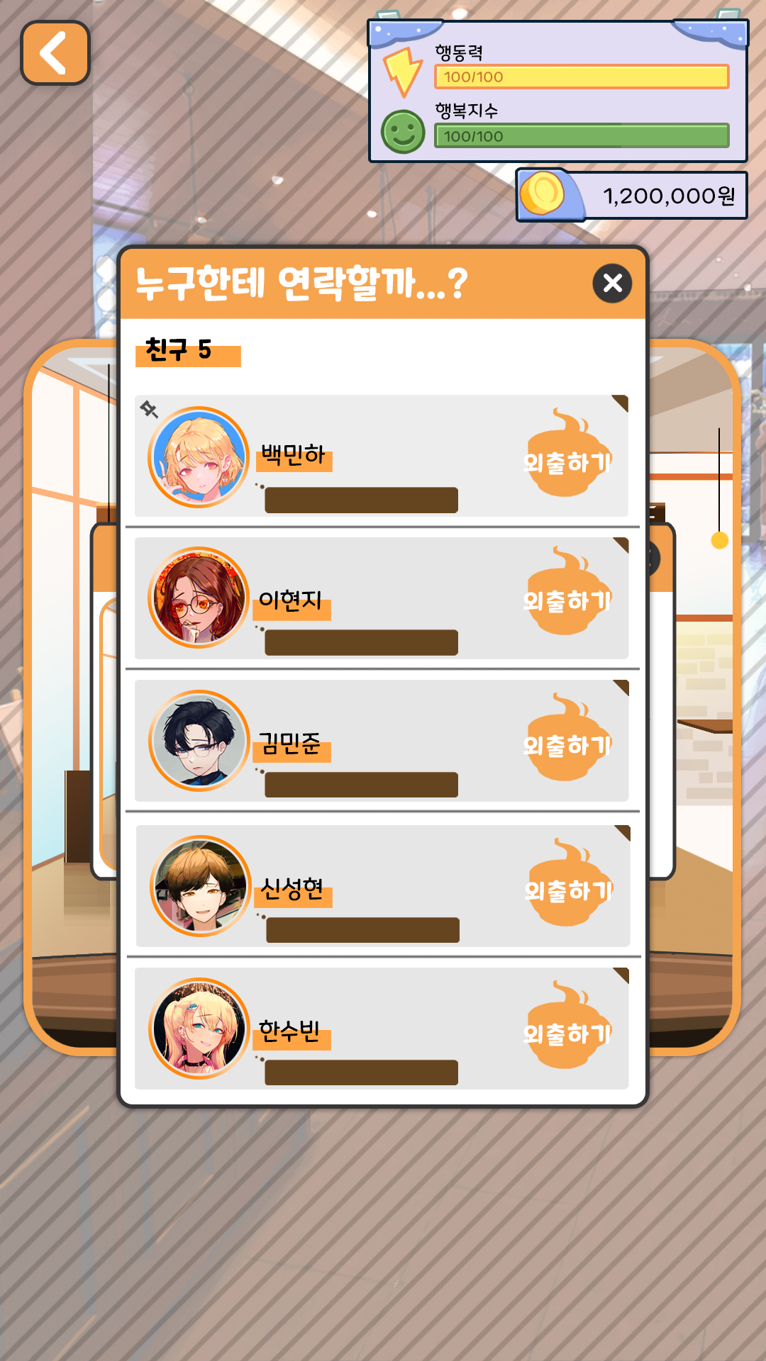 여가를 함께한 캐릭터와의 호감도가 상승하는 구조를 가지고 있습니다.