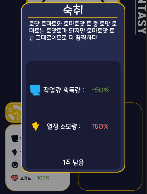 작업과 알바를 이어서 여가 시스템도 구현이 완료되었습니다!