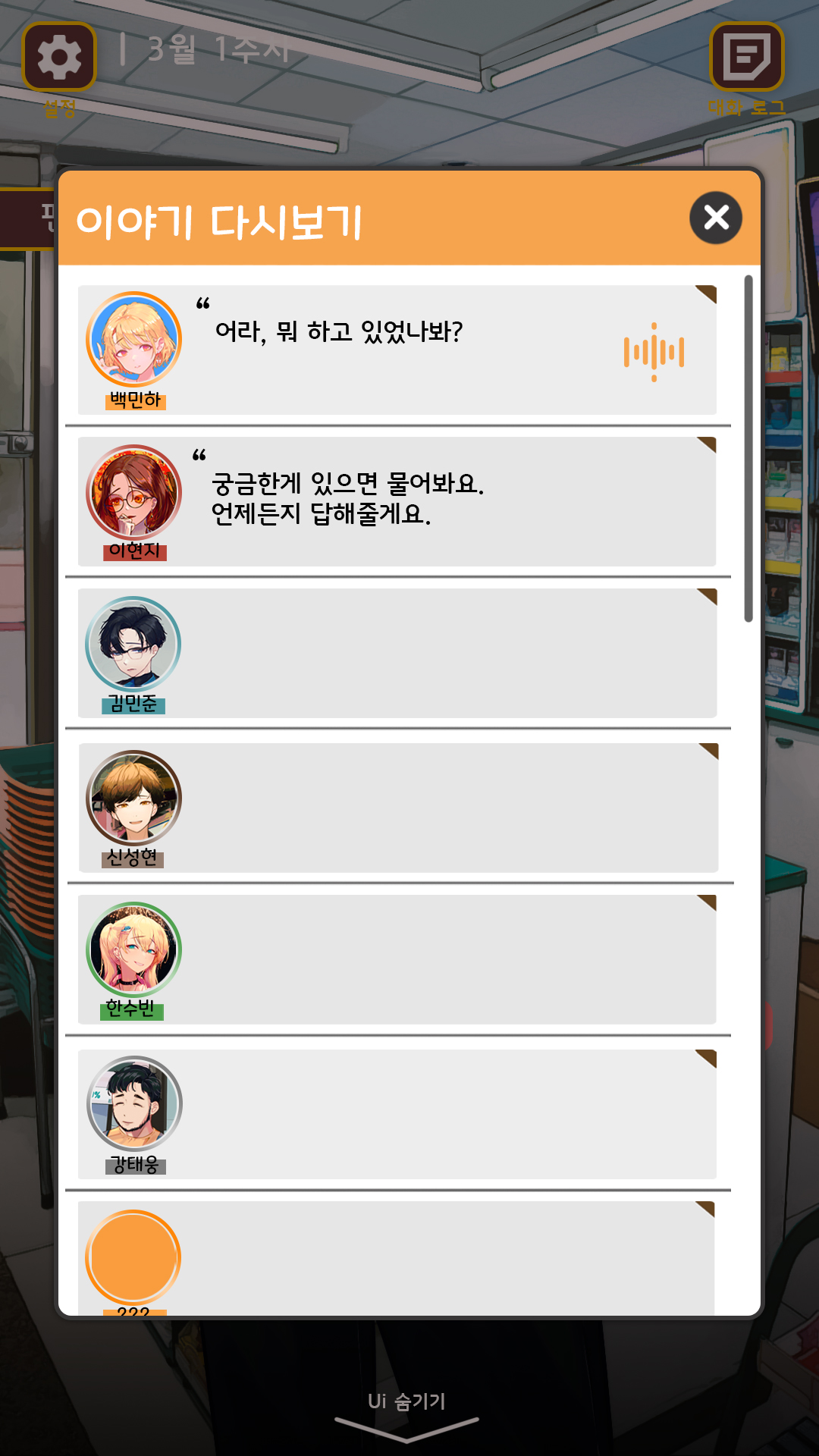서브 스토리는 각 캐릭터의 호감도에 따라 볼 수 있는 서브 스토리가 달라져,